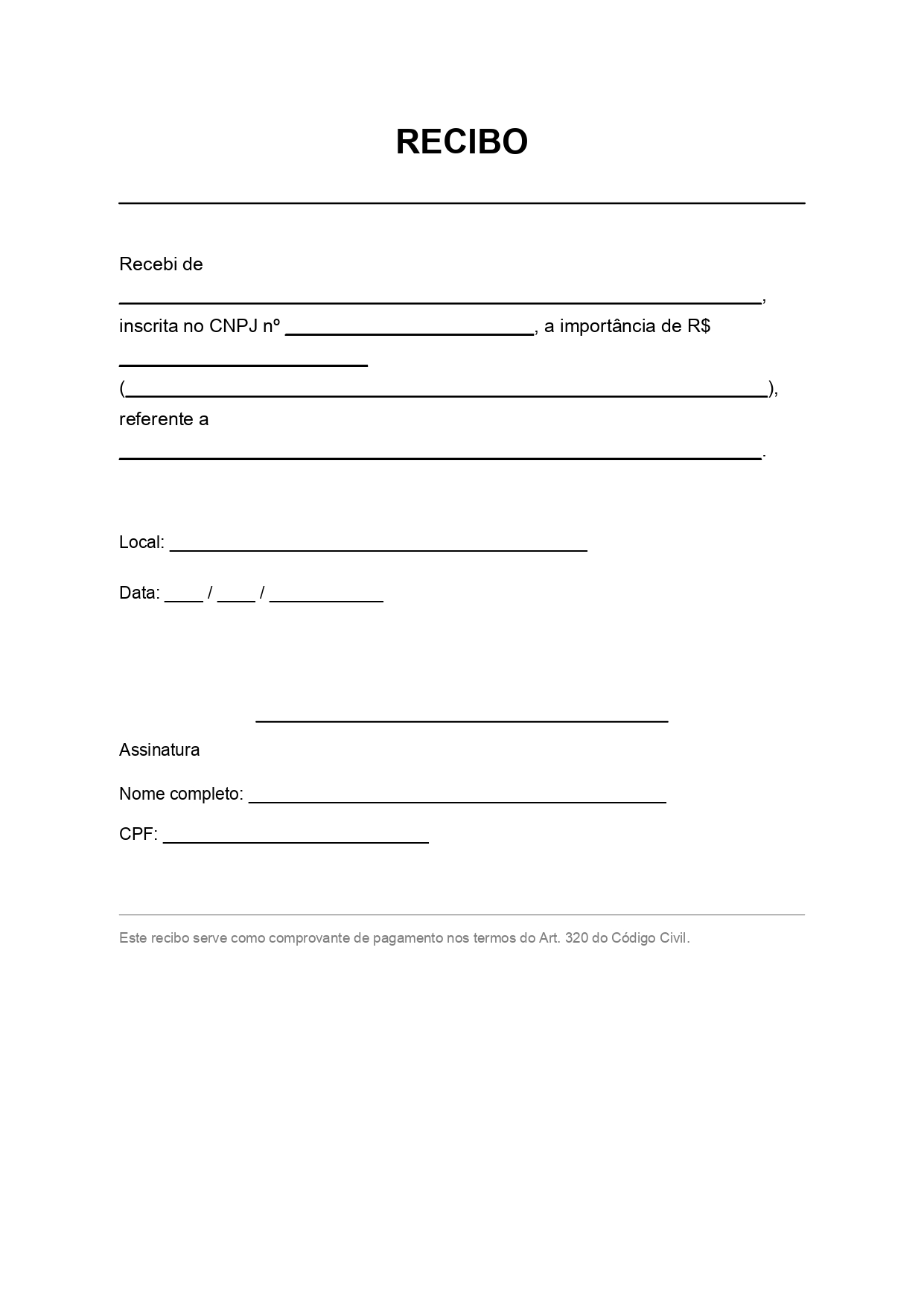 Quando uma empresa recebe um pagamento, é fundamental emitir um recibo formal que inclua o CNPJ. Este modelo é mais completo e adequado para transações comerciais, prestação de serviços profissionais e operações entre empresas e pessoas físicas.